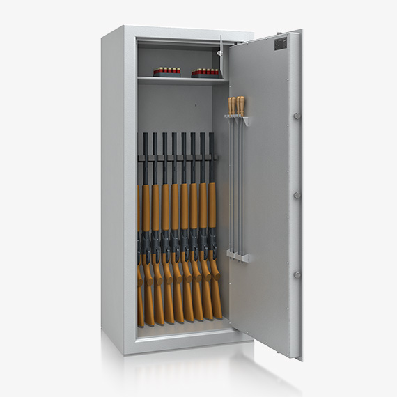 Langwaffenschrank Einbruchschutz: S2 Versicherbarkeit priv.: ca. 30.000 € Versicherbarkeit gew.: ca. 2.500 €- Artikel-Nr.: 54501 Abbildungen und Farben sind nur beispielhaft dargestellt und können abweichen. Abweichende technische Änderungen sind vorbehalten. Dargestellte Einrichtungsteile und Inhalte der Produkte sind nicht im Lieferumfang enthalten, sofern nicht explizit in der Beschreibung angegeben. Piktogramme stehen Symbolisch für die jeweiligen Merkmale.