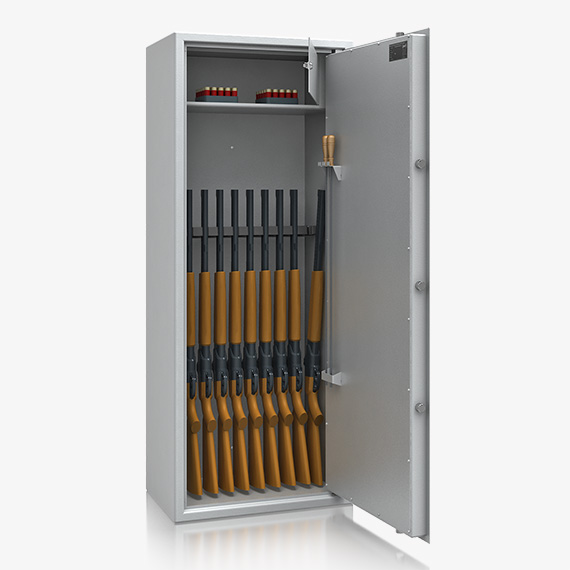 Langwaffenschrank Einbruchschutz: S2 Versicherbarkeit priv.: ca. 30.000 € Versicherbarkeit gew.: ca. 2.500 €- Artikel-Nr.: 53504 Abbildungen und Farben sind nur beispielhaft dargestellt und können abweichen. Abweichende technische Änderungen sind vorbehalten. Dargestellte Einrichtungsteile und Inhalte der Produkte sind nicht im Lieferumfang enthalten, sofern nicht explizit in der Beschreibung angegeben. Piktogramme stehen Symbolisch für die jeweiligen Merkmale.